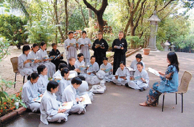 佛學院的教室,不只是在室內,戶外教室也是同學上課的地方。