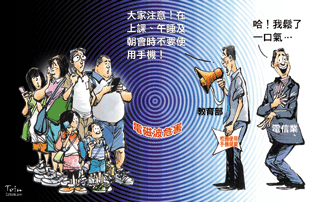 許多人在公車上、捷運上、電梯裡大聲講手機,旁若無人,顯示做人基本禮儀不足,若學生在課堂也如此,更是教育失敗。