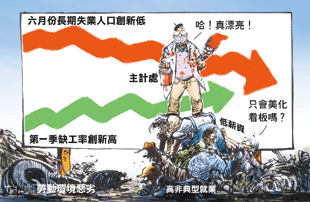 主計處日前公布六月分長期失業人口(失業超過一年以上)跌破八萬人,創三十二個月來新低,回到金融海嘯前水準。