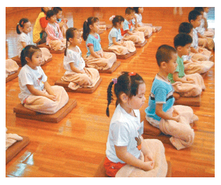 四十位小朋友十三日在台南新營講堂學習。永上法師用最淺近的語言,和最簡單的基本認知,在十名輔英科技大學同學擔任小隊輔的協助下,極具耐心地指導最天真的「小菩薩」,讓他們在端坐淨心中獲得「禪法」;在「茶禪一味」中,藉著喝茶與用點心,培養專注當下,體會食物滋味,不起分別心,不揀擇東西的好壞或好吃不好吃;在活動中,也讓令幼兒從中體會食物來處不易、放下貪念、感恩惜福、珍惜把握當下等美德。