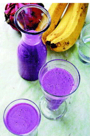 2、將火龍果、香蕉及冷開水置入容杯,開果汁機打40秒。