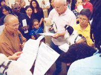 儀式中以中、英雙語交替進行,五十位東、西方人士共同宣誓佛教是他們一生的信仰,氣氛非常溫馨。