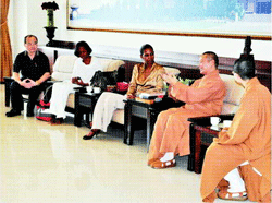 隨後,總理夫人顪貴賓參訪大雄寶殿,總理夫人還入境隨俗獻花禮佛,及參觀佛光緣美術館、大佛城,並走訪即將落成的佛陀紀念館。