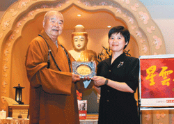 蔡麗芬說,代表大專組同學受領此獎項,感到無比榮寵;當場捐出得獎獎金給佛學院,為僧伽教育盡一份棉薄之力。並高興地說,能在大師八十華誕之期,很榮幸親口向大師祝福「生日快樂、無量壽佛」。