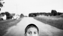 那銳利同時顯得早熟的眼神,突然讓我想起攝影師的世界不也是無法料理/記錄聲音資訊的一張相紙?小男孩身後的世界,那樣模糊的光影或者輪廓彷彿失真,但男孩澄澈的雙眼瞳孔的中央彷彿讓我看到那面鏡子,有時候不能說話,無法發出聲音,或者單純只能用眼睛來閱讀現實世界裡跳躍的律動或者各種姿勢,未必是件壞事,一扇門被迫關上後,反而讓其他感官的想像力更加真實。