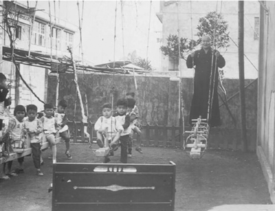 大師的赤子之心,與小朋友融為一體。圖為一九六五年攝於慈愛幼稚園。