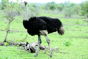 「駝鳥」體積大、體力強,有著二隻類似鋼筋般強勁細長的腳、善於行走,唯稱之為鳥,但卻有著不能飛行的無奈。將這「駝鳥」的意象投射在人生旅途上己跋涉數十載的人的身上何其像。凡是會對生命追問的人,都會感受到生命之龐大與沉重一如駝鳥的身軀,然而人的存在方式亦與駝鳥一樣注定是不能飛行,只能靠二隻鋼筋般強勁細長的腳、勞碌的往前奔馳,但目的地何在?作者把我們的眼光指引向極目之處:地平線。「遠遠的/靜悄悄的/閑置在地平線最陰暗的一角/一把張開的黑雨傘」,那把張開的黑雨傘就是奔波數萬里後停息下來的駝鳥,停下腳步後的生命就被閑置了,像一把黑雨傘,但猶然張開著,努力的做著遮陽避雨的姿勢。是駝鳥生命力的堅持,或是世界對它生存的逼迫仍不放棄?