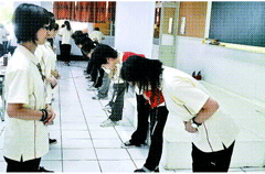 課堂上,老師帶領學員實際演練站立姿勢及一般行禮、致謝禮和致歉禮姿勢,以及托盤的使用、端茶送水、和泡茶等技巧。很多學員是第一次學習到專業的接待技巧,老師很細心地為每位學員調整姿勢,學員都說受用無窮。