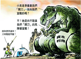 外界認為,赤字減半、財政平衡並不容易,而且未談及是否要加稅達成,僅說稅制合理化,並不具體;不過,我注意到報載的林全主張資本利得稅賦要趨於公平。