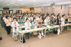 在多元快速變遷的社會中,教師透過教育淨化心靈的角色更形重要,二○○二年八月國際佛光會中華總會在三峽金光明寺主辦了首屆教師佛學夏令營,約有一百五十多位老師參加,由於教師們的反應熱絡,因此佛光會決定每年在暑假持續舉辦教師佛學夏令營,每年規畫不同的深入探討課程。