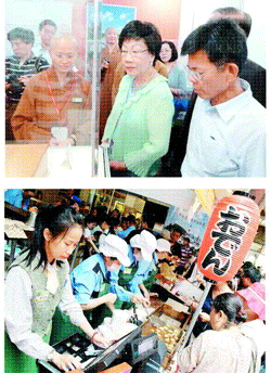 【記者郭書宏大樹報導】「二○一一高雄國際‧佛光山佛陀紀念館素食博覽會」昨邁入第二天,正逢周日與佛光山寺舉行供僧法會,佛館禮敬大廳會場一早湧進上萬人潮,前副總統呂秀蓮、前高雄縣長楊秋興也蒞臨品嘗美食;國宴主廚阿基師現場示範三道素食料理,民眾紛紛稱讚:「免費的素博會有吃又有拿,又能近距離看名廚示範素食料理,真的很值得一來!」