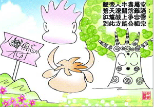 有正確的了解,體會空有不二的道理,便能跨越凡聖的對待,沒有你是眾生、佛陀的分別看待,如此便能進一步有更寬廣的心量包容一切萬物,如圖「人牛俱忘」,完全放下、不執取,於五欲六塵中解脫自在。