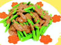 4.核桃醬汁淋在四季豆上,即可食用。(也可留2~4片核桃不搗碎,撒在上面)