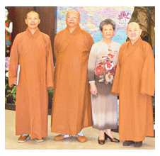 李新肅(右二)是慧龍法師(左二)、慧傳法師(左)的母親,也是佛光山長老尼慈莊法師(右)的姐姐,更是慧和法師子女。