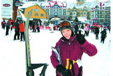 我從來沒滑過雪,所以去之前華華就帶著我到處選購裝備。他知道我愛漂亮,細心的幫我挑選可以保暖、排汗又可愛的滑雪裝,然後又買了一套雪白色帶著銀邊的滑雪用具。就這樣我們帶著學生去了加拿大。