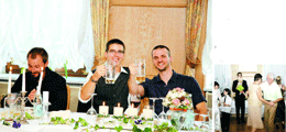 婚禮當天最主要的重頭戲,總是在德國人喝上好幾瓶酒後開始登場,雙方家長或新人的結婚感言、新娘丟捧花、晚餐後的遊戲、男女老少使出渾身解數盡情熱舞等,高潮不斷。