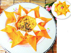 5.在南瓜飯中,撒上海苔芝麻香鬆,即成南瓜花飯。