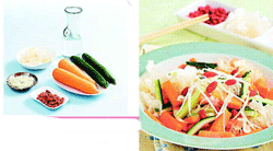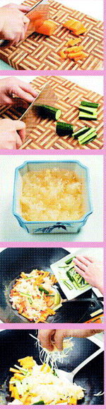 1.紅蘿蔔與小黃瓜也可以切成片狀,依各人喜好,呈一口大小即可。