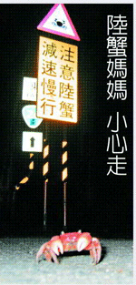 【生活快門】陸蟹媽媽 小心走 文與圖/黃鎮 |2011.09.28 語音朗讀 881觀看次 字級 大 中 小 陸蟹是恆春半島相當具有特色的生態資源,墾丁國家公園內的陸蟹棲地,因馬路的開發,陸蟹媽媽在每年產卵期間,必須抱卵橫過馬路到海邊產卵;陸蟹產卵的海邊常在香蕉灣、後灣和港口溪河口等,產卵時間多在夜間七時三十分到十時,以八時為尖峰時段。 陸蟹媽媽過馬路時,常被急駛的車輛輾斃,為了讓陸蟹生育之路走得更平安,墾丁設有全台唯一「小心陸蟹」的告示牌,提醒來往車輛減速慢行。 七到十一月正是陸蟹繁殖季節,到墾丁遊玩,可以安排陸蟹觀察行程;而行經香蕉灣一帶的路段時,也要記得減慢車速,避免傷害牠們。 前一篇文章 【育兒筆記】 應該要快樂的才藝班 下一篇文章 【不可不知日耳曼】有趣的 德國廚房 熱門新聞 01與精品品牌撞鞋 印度涼鞋打專利戰2025.12.2102銀杏點亮.東京印象2025.12.2303邂逅佛教 安頓身心2025.12.2104【動物奧斯卡獎】猜猜誰最會演(上)2025.12.2105北捷英雄捨身救人 母盼菩薩接引2025.12.2306【守護家人】 為愛築家2025.12.2307社論--瞋恨的危害2025.12.2108【佛教管理學②】人間佛教的「治心十法」⑩2025.12.2109數位科技與信仰交會 推播人間佛教文化2025.12.2210降噪耳機原理2025.12.22 訂閱電子報 台北市 天氣預報 台灣一週天氣預報 相關報導 【生活快門】 動畫掛軸【家常美味】 卷卷菜包粿【教育面面觀】 數位時代的親師挑戰【生活快門】 意外之喜【相守一輩子】 等待不一定有好結果【生活快門】真真假假 作者其他文章生活快門--農特產扮裝秀【生活快門】 英雄出少年