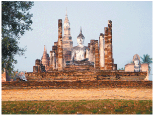 以上這一切,都可由接受印度阿育王傳入佛教的海港都市「佛統」說起。由這個在玄奘大師所著《大唐西域記》裡稱為「墮羅缽底國」的城市向北開展,佛教一路披荊斬棘,經過如今被列為聯合國文化遺產的「大城」、「蘇可泰」等地,而在清邁達陣。其中尤以泰國人創建的第一個泰國王朝「蘇可泰」最負歷史意義。許多傳承至今的佛教規制,例如泰國成年男子一生至少要出家一次,甚至王室成員未出家者不得繼承王位的內規,都成制於蘇可泰王朝;而泰國文字之創立、藝術之顛峰,更是半島上引以為傲的佛教光榮。演變至今,短期出家不但是承襲傳統的美規,更是現代人沈澱心靈,沉潛之後再出發的最大動力。
