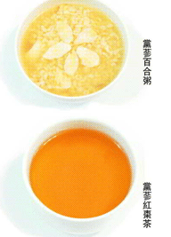 3將百合、粳米煮成粥後,再將黨蔘藥汁調入,並放入冰糖調味即可。