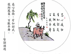 此幅畫為溫馨感人的人牛同樂圖。牧童騎在牛背上吹笛自娛,笛音悠