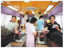 此外,魏姓、廖姓兩位年輕人,愛心不落人後,很快捐出五百西西。一位張姓小姐雖然害怕扎針,仍鼓起勇氣忍痛發揮愛心;無論是俊男、美女、夫妻、情侶或歐巴桑、歐吉桑,只要符合條件的,他們都樂意以身教教育子女,用具體行動響應孝道捐血報恩。