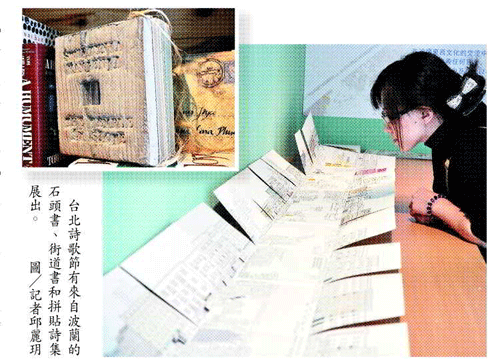 由台北市政府文化局主辦,邁入第十一年的「台北詩歌節」,由詩詩鴻鴻與楊佳嫻策展,明天到十二月十一日展出,主題訂為「詩的小宇宙」,要讓詩變成開放的、豐富的藝術遊園地。策展人鴻鴻表示,期望將「詩歌」脫離紙本,讓現代詩小宇宙開展在台北市民的文化生活中。