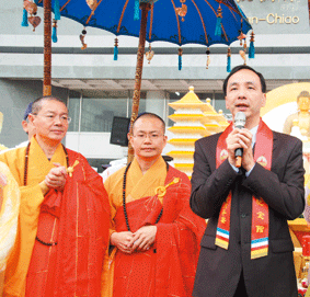 抵達新北市,市長朱立倫接下傳爐並致詞說:「時刻謹記行三好,就能平安、吉祥。」他推崇佛光山開山星雲大師的三好運動,並代表市民感謝佛祖為全民祈福,土城慈法禪寺住持淨耀法師、民代等貴賓踴躍出席,在榮獲薪傳獎的鴻勝醒獅團及米奇、米妮與Kitty貓卡通玩偶的開道下,雖逢大雨,沿途還是人潮不斷。