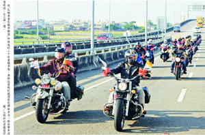 記者羅智華彰化報導】在隊長帶領下,二十輛重型機車一路往前奔馳,威風凜凜的盛大陣仗引人注目!不過,可別以為這是車隊的集體出遊,事實上他們是特別發心替「佛祖巡境‧全民平安」巡境隊伍在前端引路的反飆車重機聯盟車隊,這也是巡境隊伍首次有重機隊伍擔任開路先鋒、場面很壯觀。