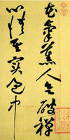 黃庭堅四十八歲時所寫的小品〈花氣薰人帖〉,是應駙馬爺王詵要求和詩而作,詩曰:「花氣薰人欲破禪,心情其實過中年;春來詩思何所似,八節灘頭上水船。」現藏於台北故宮博物院。