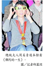 【記者楊慧玉台北報導】總統夫人周美青昨日蒞臨佛陀紀念館,所到之處皆受到民眾熱情歡迎,並爭相握手拍照。周美青參觀佛陀紀念館本館,對於佛教文化的傳播能如此生活化、新穎且融入科技感到驚喜,她表示藉由科技的融合,能讓小朋友對原本艱深的佛教文化與教義感興趣,是非常好的引導方式。