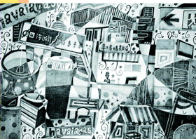 對境 實景 vs. 內心的異化空間 上 阮愛惠 圖/林耀堂提供 |2012.01.01 語音朗讀 3396觀看次 字級 大 中 小 某天下午的設計素描課,林耀堂老師把繪畫教室拉到外面,讓學生來到他們平日消費用餐的學校餐廳。 位在地下一樓的台科第一餐廳,只有在室外樓梯口留住一小片秋日透亮的陽光,進到裡面,用餐時擁擠的人群已散去,燈光也關掉一大半,歇息的各食鋪裡,工作人員慢條斯里的整理著,昏暗之中讓人有一種熟悉,也感到一些迷離。 林耀堂老師要學生們不要完整的寫生,而是將自己置身在現場,用內心去感受擷取作畫元素,打破學校餐廳儼然的擺設,多應用場內較有變化的部分,加上探尋自己內心的異想感受,完成校園寫生。 思念,童年 鍾亞純 創作理念: 在吵雜的地下餐廳,我帶上耳機,就此與世隔絕。拉開序幕,書中的世界萬千,腦海有音樂伴隨。 憶起童年,未完的夢徘徊,闔上書本,提起畫筆,我又回到這地下世界,繼續未完的作業…… 夢境 許瑄庭 創作理念: 歷經疲憊的一天,我闔上雙眼,進入了只屬於自己的異想空間。 夢境中,現實不再如往常死板。空間開始分裂、扭曲、變形,各式各樣的符號融入了這個夢幻之地。 而我則邁開大步,獨自漫步於這個虛實交雜的時空,享受這抽離現實生活壓力的一人美好時光。 午夜鐘響後,再不久太陽依舊要升起,現實終究會來敲門,提醒我該回去了。 期待下一次的一人旅行。 疊.映 李欣瑜 創作理念: 許多事物在乍看之下都十分平凡,鮮少在腦海中留下烙印。但若停下腳步,可發現在其中穿梭的光影,以及供心靈馳騁的無限想像空間。 任何事物都非只有一面,在光影與視角的變化之下,演奏出充滿神祕色彩的旋律。 心中似乎有什麼在隱隱浮現,與熟悉的現實交疊。 交錯複雜的氣氛 李佳容 創作理念: 在人潮往來的餐飲區,只有一個女性的身影映入眼中,她是在等待飲料?抑或是煩惱自己肥胖的體型而佇立在那兒? 她的周圍散布著令人煩惱的符號,單純的背景,轉變成只屬於她自己空間的氣氛。 凝結的夢 張芸瑄 創作理念: 非吃飯時間的台科第一餐廳,沒有用餐時的擁擠吵雜而顯得冷清。 仔細觀察桌椅餐具,還有櫃台內的老伯伯,不禁想起:老伯伯在店裡工作一整天,真好奇他眼中的餐廳是什麼模樣? 或許,他在這日復一日的工作中,他凝視的其實是他童年未實現的夢吧?! 前一篇文章 百校設計創作展 下 下一篇文章 橡皮擦黏土 熱門新聞 01桌球年終賽激戰 林昀儒力爭晉4強2025.12.1202【研朱札記】 臺灣第一本訪碑專著 《北臺灣之古碑》與石坂文庫2025.12.1103傳燈60.百年仰望紀念郵票 明年3月發行2025.12.0904泰國合艾水災 佛光山送暖助復原2025.12.1105【人間行路】迷路的異鄉人 2025.12.0906佛光山人間大學新馬分校 結業展示所學2025.12.1007光明大學宿霧藝術學院 三好音樂劇放光采2025.12.1108多倫多佛光山 佛光人行佛精進獲獎2025.12.1109洗衣公車 助街友找回自信2025.12.0910冰雪夜綻佛光 西來寺響應哈崗親子嘉年華2025.12.09 訂閱電子報 台北市 天氣預報 台灣一週天氣預報 相關報導