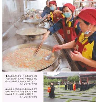 【人間社記者綜合報導】一月一日(農曆十二月八日)恭逢「佛陀成道日」,佛光山派下全球道場秉承開山星雲大師教導,精心烹煮臘八粥,在各地熱烈展開系列活動,或舉辦佛學會考、捐血活動,或組團至各級政府機關、學校、安養院、醫院結緣上百萬份的臘八粥,分享佛教徒慶祝佛陀成道、緬懷佛陀廣度眾生的悲心。