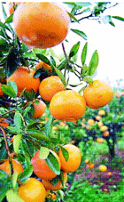 山坡上,陽光直接照射的那一側,一顆顆橘子白粉粉的,乍看以為是發了霉,採下一顆清了清,熟悉的橘黃在「卸妝」後還原本色。雖然柑橘喜好陽光,但為了避免太陽直射造成曬傷,柑橘也得注重防曬,就像是女人塗防曬乳一樣,要在一顆顆柑橘表面施灑上碳酸鈣,否則曬傷一側會有掉汁、乾扁的現象,就算長成也容易造成落果。