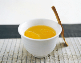 橘子中豐富的維生素C能調整胃腸功能,有利於消化,幫助增強腸道免疫力;維生素C也能預防流行性感冒,膳食纖維可消除便祕,提高人體的代謝能力。每天早晚飲用二次,可以有效增強人體免疫力。