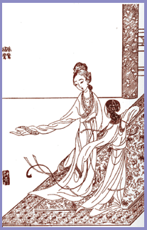 四、在《民間珍品圖說紅樓夢》(東大圖書公司)一書中,作者王樹村先生於「偕鸞」的一圖中曾言:「我國傳統人物畫中,仕女題材者多是雍容華麗,或清秀閑雅,姿態文靜,很少揚袖起舞,動作放開者,因古代簫鼓聲樂,演技舞蹈等,除皇帝王府,豪門貴戚之家外,市上罕見。故一般畫工難以想像創作出來。」以此來看賈府中起舞作樂的場面並非不可能,只是由誰擔任呢?唯一的可能就是賈府本身的姬妾。姬妾通常出身青樓,笙簫琴瑟,無所不通。在《紅樓夢》二十八回中,寶釵之兄薛蟠找來的妓女雲兒,不僅在筵席上彈奏琵琶,還會作詞作曲,算是一例。因此若以此推斷賈府中能歌善舞者,唯有賈珍身邊的四個小妾,其中佩鳳、偕鸞最有可能。