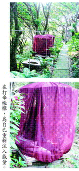持續一整年,走過春夏秋冬的景致。松鼠在枝頭跳躍,蝴蝶圍繞著講堂聽法,夏蟬大聲鳴唱;冬陽從樹間篩落,樹林裡飄著樹脂的芳香。記得有一回,傘帳上掛著人面蜘蛛與螳螂,和我一同禪修,等禪座結束,牠們也準備好要離開。去年的最後一場,恰巧是聖誕節,天氣格外寒冷,外子還特別問,這麼冷還要去禪修嗎?是呀!飄著雨或聽風吟唱,在禪林中都格外有一番詩意。而且我怎能錯過每個月一次的身心靈SPA之旅呢!
