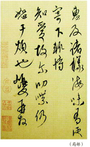 的書法是少數民族之中最具代表的人物。他學習書法的次第,先從虞世南的楷書入手,其次行草書則是以臨摹王羲之為主;之後旁及宋人米芾風貌。他的書法造詣,除了追慕風流溫潤之外,走筆犀利,風馳電掣、快如閃電,是其特質。