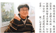 陳世明的畫作取名「希望」,四十五歲的他罹癌前從事職業攝影師,雖然是美工科畢業,卻放下二十年的畫筆,一頭鑽進攝影世界,「年輕時對生命和死亡沒概念,攝影連墳墓都不忌諱,罹癌後我連人家辦喪事都不敢看。」