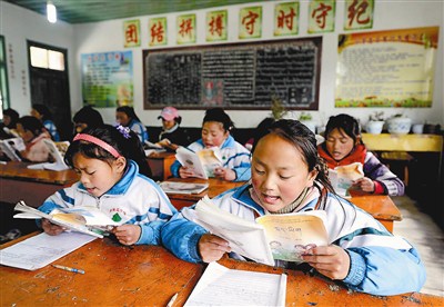 西藏從一九八五年起在農牧區中小學校實施「三包」(包吃、包住、包學習費用)政策和助學金制度,並多次提高補助標準。去年秋季再次提高標準,全區有五十一萬七千名中小學生及學前教育幼兒受益。今年,他們將實施城鎮學前三年免費教育政策,將義務教育延長為十五年。圖/新華社非報系