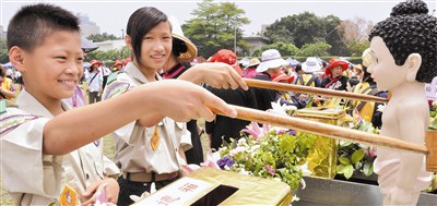 昨天是母親節,亦是國定佛誕節。佛光山寺、國際佛光會中華總會在總統府前凱達格蘭大道舉辦「千僧萬眾祝佛誕,一心十願報母恩—二○一二年國定佛誕節暨母親節慶祝大會」,吸引世界各地信眾、數百位模範母親、聯合國非政府組織代表、各國駐華使節,以及各宗教代表等十萬信眾參與,場面浩大莊嚴。