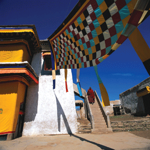 陪我前往的西藏佛教協會辦公室主任索朗師父,一看見波米活佛就伸伸舌頭。我曾請教過,這是一種很高很尊敬的問候禮儀。