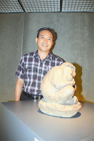 蔡永武以作品〈心肝寶貝〉拿下石猴雕刻賽冠軍。圖/曹馥年