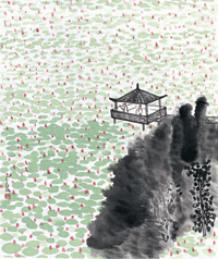 畢竟是六月盛暑的天氣啊!西湖此時風光比起其他季節分外不同,沒有冬雪、春雨和秋風的愁人,憂傷和寒意,眼前當下,只見連天的碧葉蓮蓋,映日的紅花荷渠,這些自然界中無情世界的盛衰榮枯,空有虛實,究竟和有情世界中的芸芸眾生是一樣的啊!