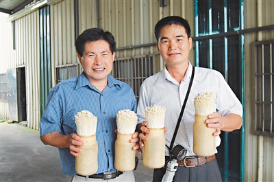 菇農王鴻泰(左)、王泰鈞(右)兄弟 圖/記者楊慧玉