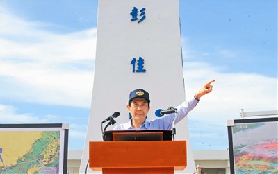【本報台北訊】馬英九總統(圖/中央社)昨天率領官員、立委及媒體視察彭佳嶼,明確宣示捍衛釣魚台主權。並在島上與海巡署勤務指揮中心、東沙及南沙指揮部視訊通聯。