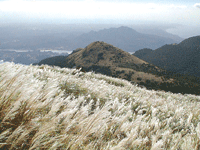 然而,誰還在乎那個勞什子的什麼芒花枕子呢?在這個萬相清冽,什麼都散盡了似的秋日,大千中彷彿拱抱著一顆玲瓏剔透,藍水晶一樣清鑑的心臟;天是淨琉璃似的,坦坦盪盪,無垠無涯的透藍;那方士之山也是的,氤氳繚繞的水氣悠悠散了,現出一雙雙湛湛澄明,可以潔清三千恆河砂流一般的紺色清眼。遍野的芒花褪盡紫色的胎衣,漫谷漫丘一片霏霏的白淨。