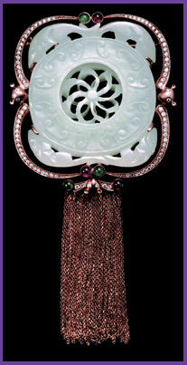 明代和闐白玉、玫瑰K金、翠玉、紅寶、白鑽。