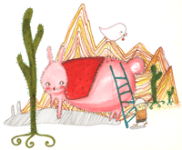 「日子過著、過著,慢慢地我也覺得厭倦了,天天都只跟動物玩,沒有同學可以說話,沒有籃球可以打……而且以前所學的字,全都忘記了,也好久沒聽到老師講故事了,這時候我好懷念學校的生活。我想,其實上課也蠻有趣的,可以知道很多道理,下課可以跟同學玩,假日又能逛逛街……於是好想回學校,好想打個電話給老師,卻找不到電話亭?而且在這深山裡怎麼回去?」瞧你嚇出一身冷汗的樣子。